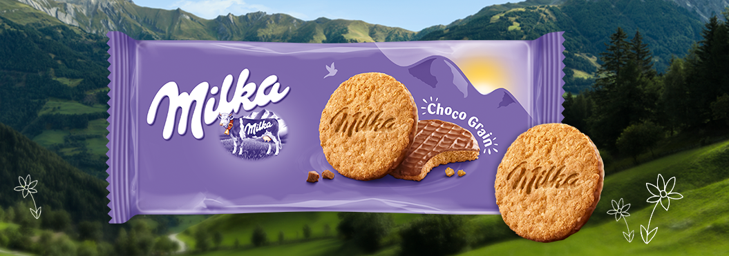 ✅ Creamy Alpine milk chocolate with whole grain biscuits