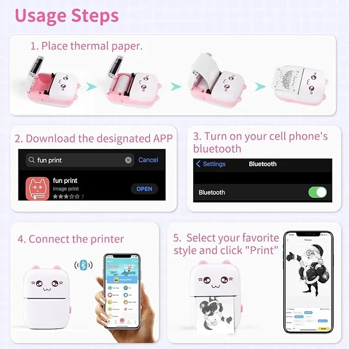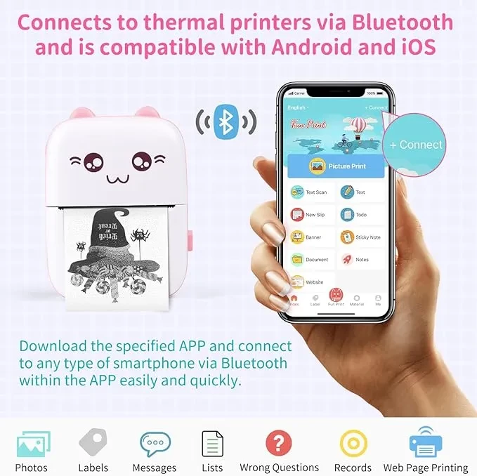 The Mini Printer Machine is a compact, portable thermal printer that brings convenience and fun to everyday tasks. Perfect for printing shopping lists, reminders, labels, photos, or cute stickers, this lightweight device connects wirelessly via Bluetooth to your smartphone or tablet. Ideal for students, office workers, travelers, and creatives, it makes organizing, journaling, and sharing moments easier than ever—anytime, anywhere.