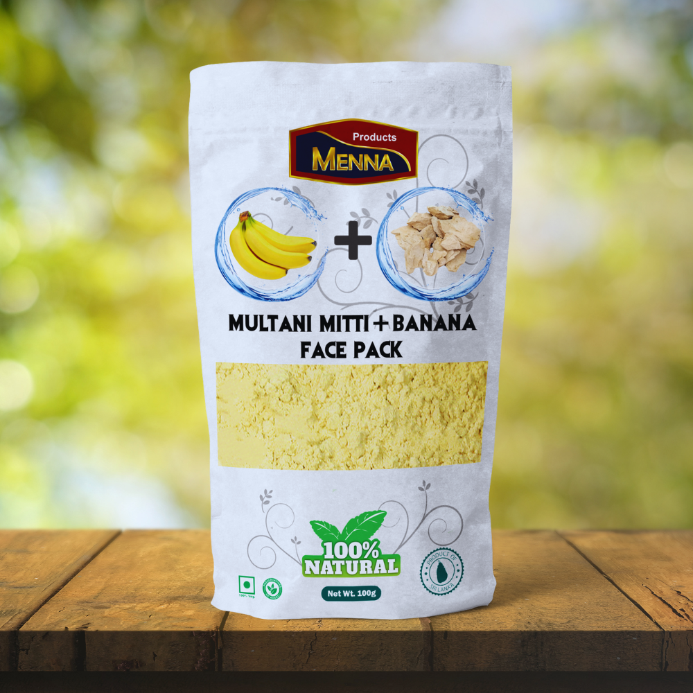 - Mix Multani Mitti + Banana Face Pack Powder with water, rose water, or milk to form a smooth paste. Apply evenly to the face, leave for 15-20 minutes, and rinse off with lukewarm water for a deeply cleansed and glowing complexion.