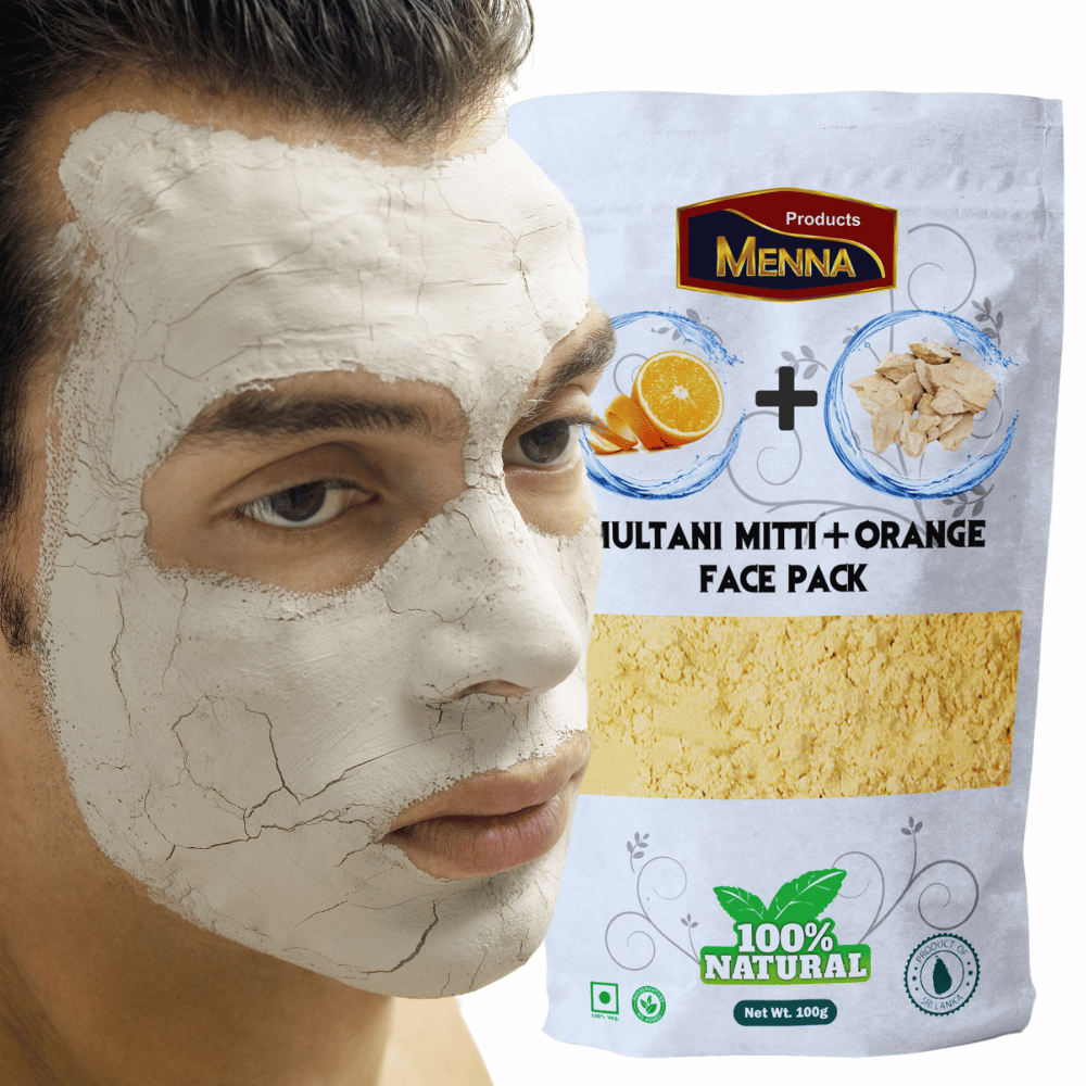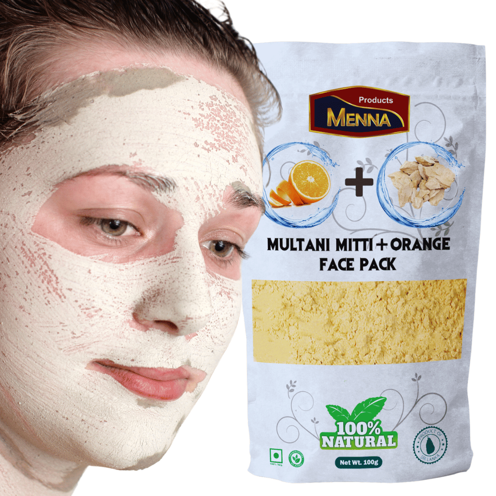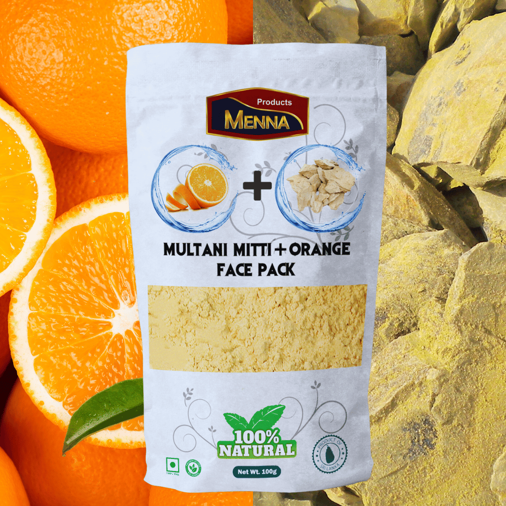 - Mix Multani Mitti + Orange Face Pack Powder with water, rose water, or yogurt to form a smooth paste. Apply evenly to the face, leave for 15-20 minutes, and rinse off with lukewarm water for deeply cleansed and glowing skin.