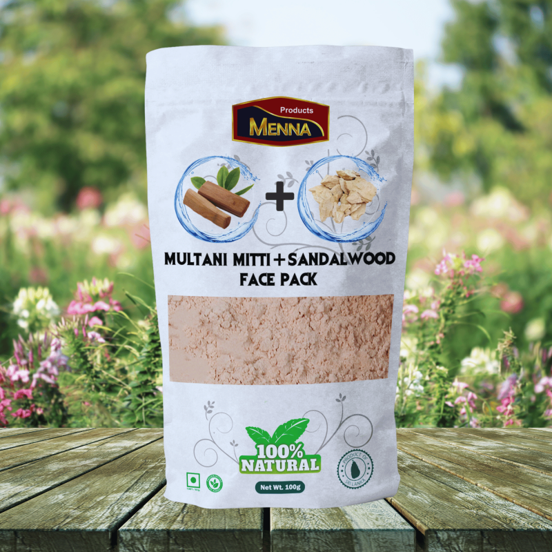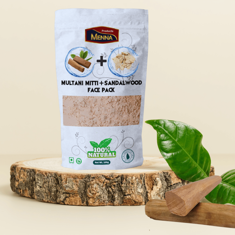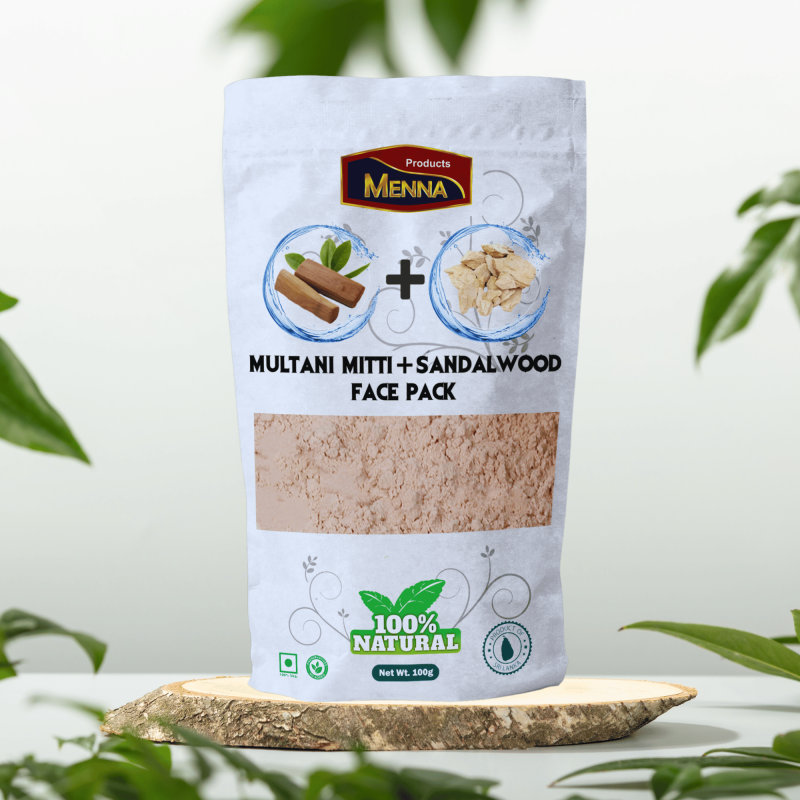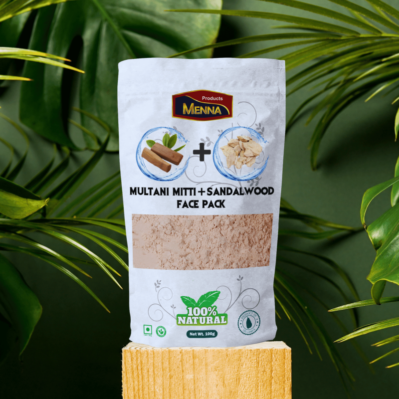 - Mix Multani Mitti + Sandalwood Face Pack Powder with water, rose water, or yogurt to form a smooth paste. Apply evenly to the face, leave for 15-20 minutes, and rinse off with lukewarm water for deeply cleansed and glowing skin.