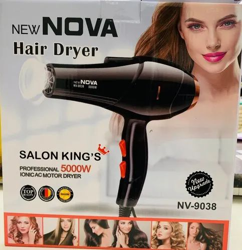 Style your hair like a professional with the Nova 5000W Hair Dryer - NV-9038. Engineered with a powerful 5000W motor, this hair dryer ensures fast drying and effortless styling, saving you valuable time. Its ergonomic design makes it easy to handle, while the sleek build ensures both durability and comfort.