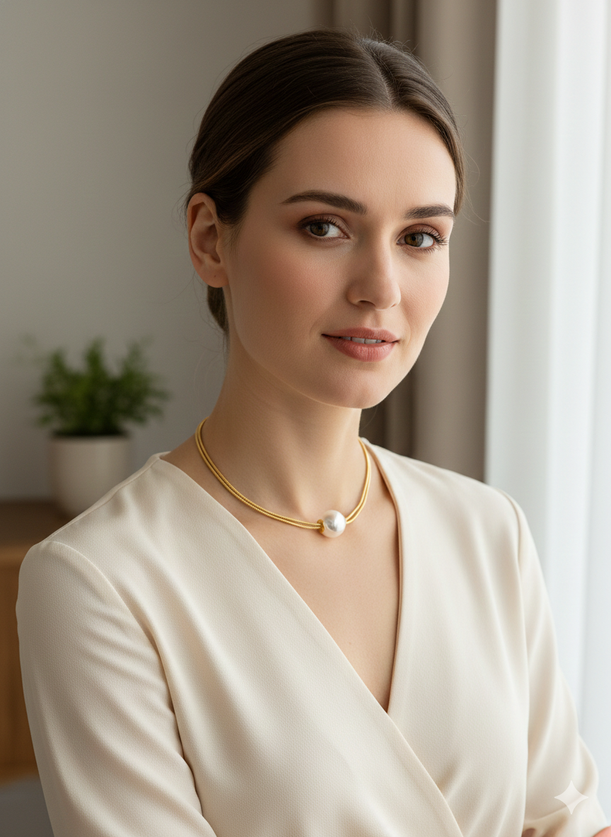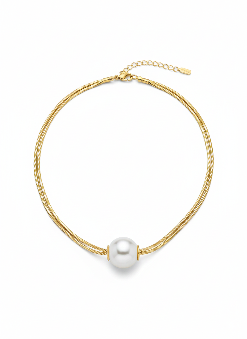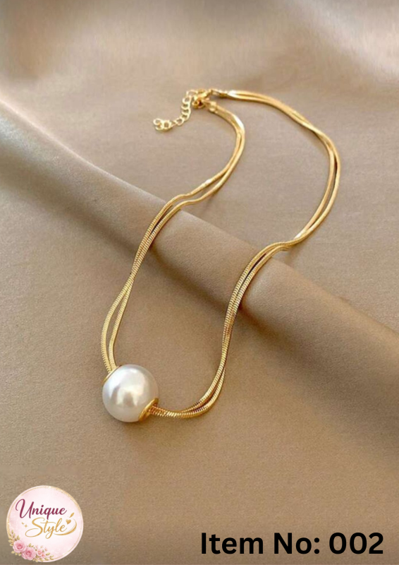 Enhance your elegance with this beautiful Pearl Necklace with Gold Color Chain, designed to add a timeless and classy touch to any outfit. Featuring lustrous pearls paired with a premium gold-colored chain, this necklace is perfect for daily wear, parties, weddings, and special occasions. Lightweight and comfortable, it blends classic charm with modern style.