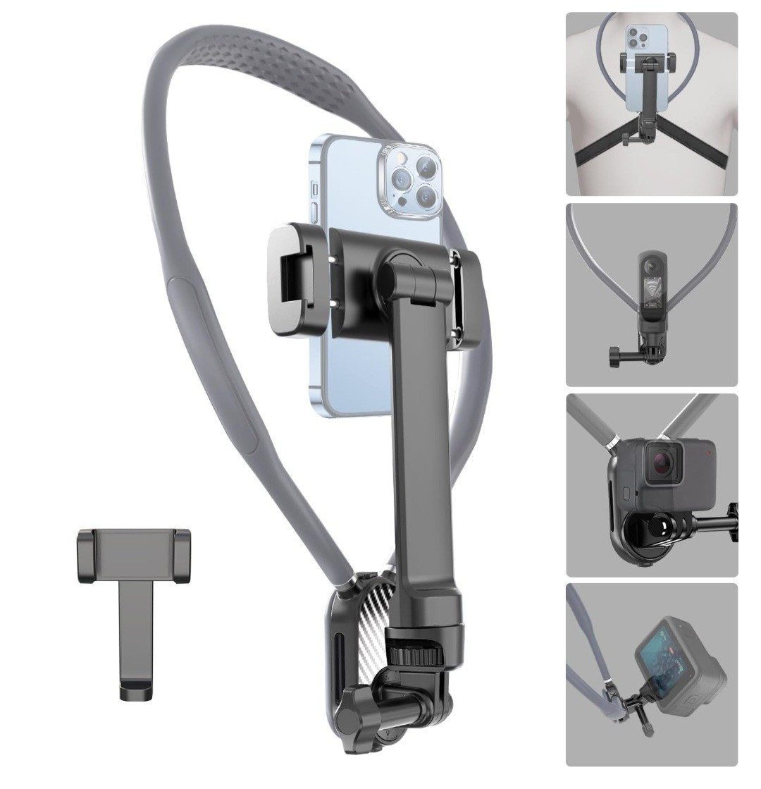 Our hands free phone holder for neck uses a longer phone clip with a long viewing distance. You can view the content on your phone in real time and free your hands for video creation (please use the chest strap). The phone clip of the cell phone neck holder can firmly hold the phone and can extend 2-3.5" wide, which is suitable for most mobile phones.