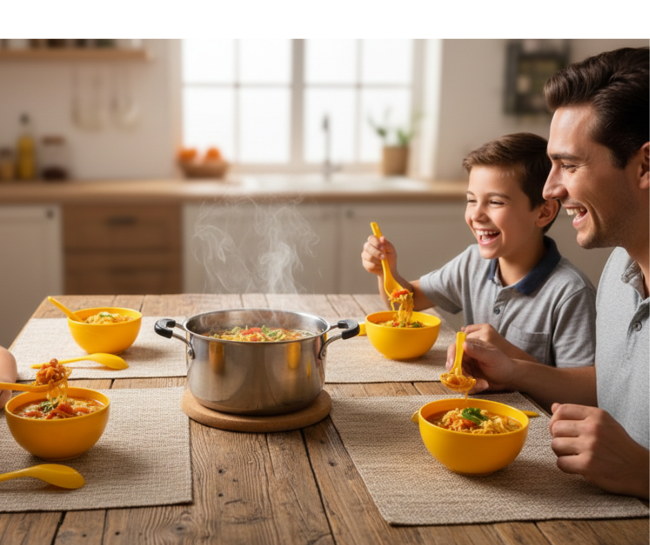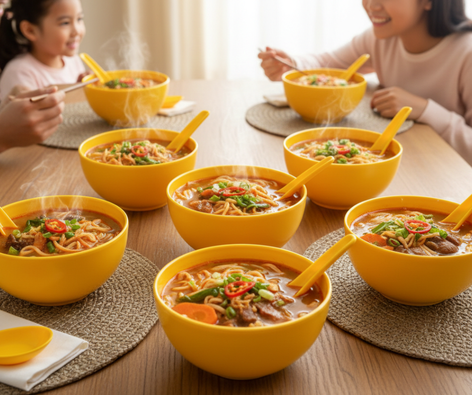 The Plastic 6 Pcs Soup Bowl With Spoon Set is perfect for serving soup, noodles, porridge, and other meals. Made from durable and lightweight plastic, these bowls are easy to handle and suitable for both adults and children.