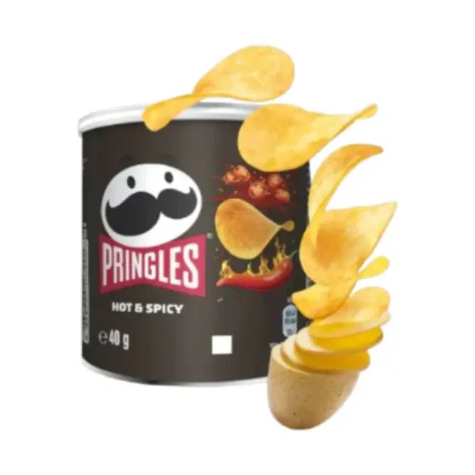 Spice up your snack time with Pringles Hot & Spicy 40g. These thin, crispy potato crisps are coated in a fiery blend of spices, delivering bold, crunchy flavor in every bite.