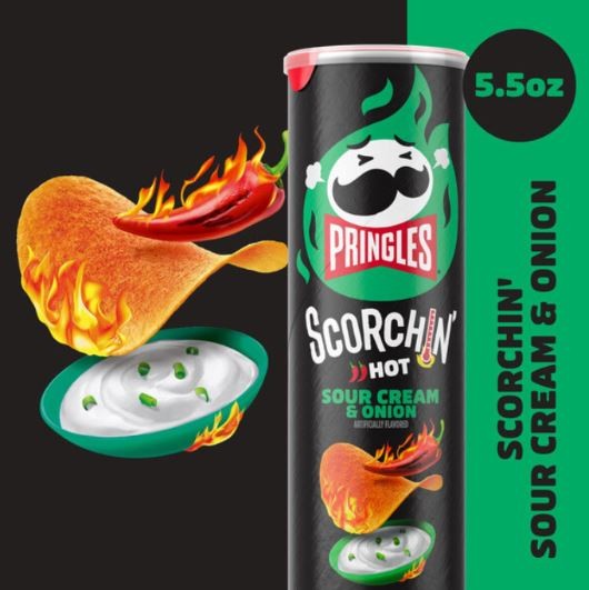 Add a fiery twist to a classic favorite with Pringles Scorchin’ Hot Sour Cream & Onion 158G! These iconic crisps combine the creamy, tangy taste of sour cream and the savory kick of onion with a bold Scorchin’ heat, delivering a unique flavor experience in every crunchy bite.