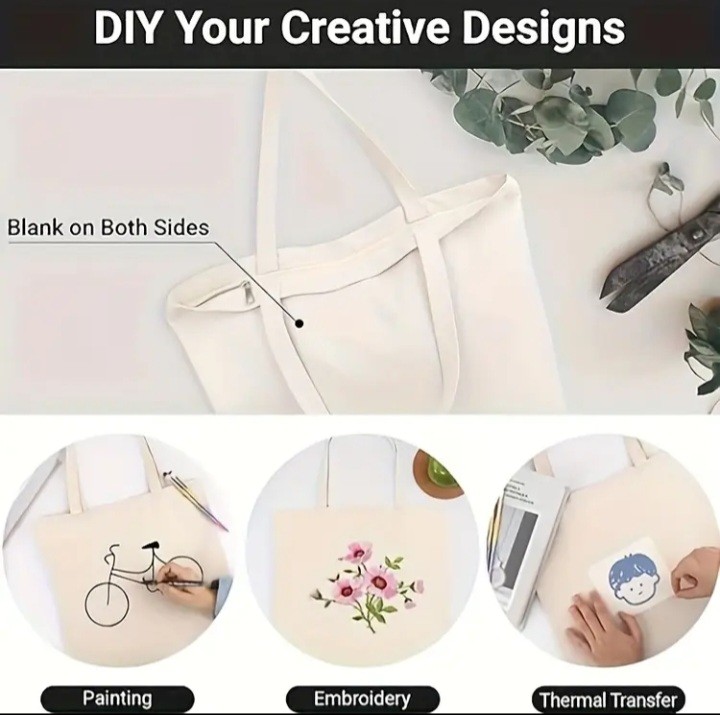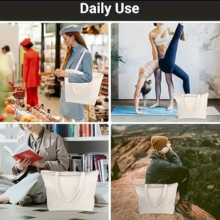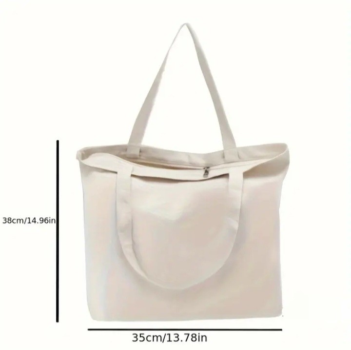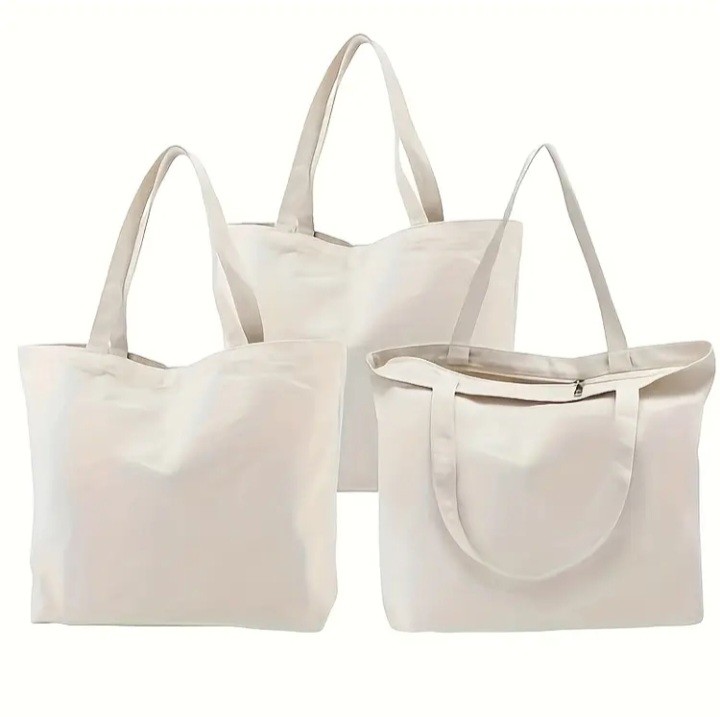 1/3/pcs Tote Bag with Zipper, Blank Bags for Women, Reusable Tote Aesthetic with Natural Cloth, Shoulder Strap, Bulk for DIY, Grocery, Beach, Travel, Gift
