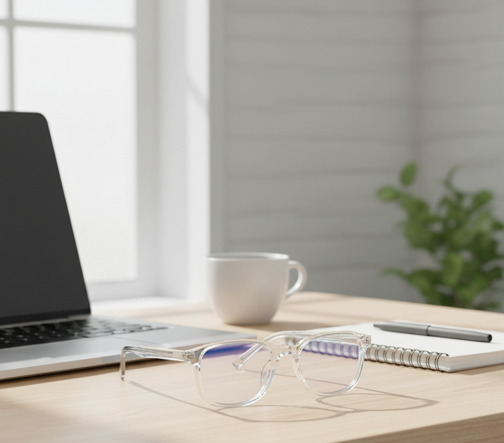 Clear anti-blue light lenses that filter up to 30–40% of harmful blue light (400–450nm)