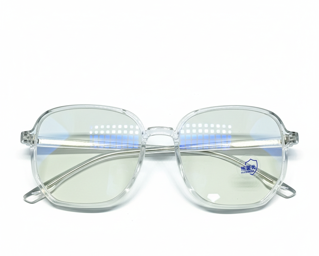 The Retro Square Anti-Blue Light Glasses - 1020CL blend vintage charm with modern eye protection, featuring a classic square frame in a sleek transparent crystal (clear) finish. Designed for the digital lifestyle, these glasses help reduce eye strain, block harmful blue light, and enhance visual comfort during extended use of computers, smartphones, and tablets. The minimalist, see-through design offers a subtle yet stylish look, perfect for professionals, students, and fashion-conscious users who want both functionality and elegance.