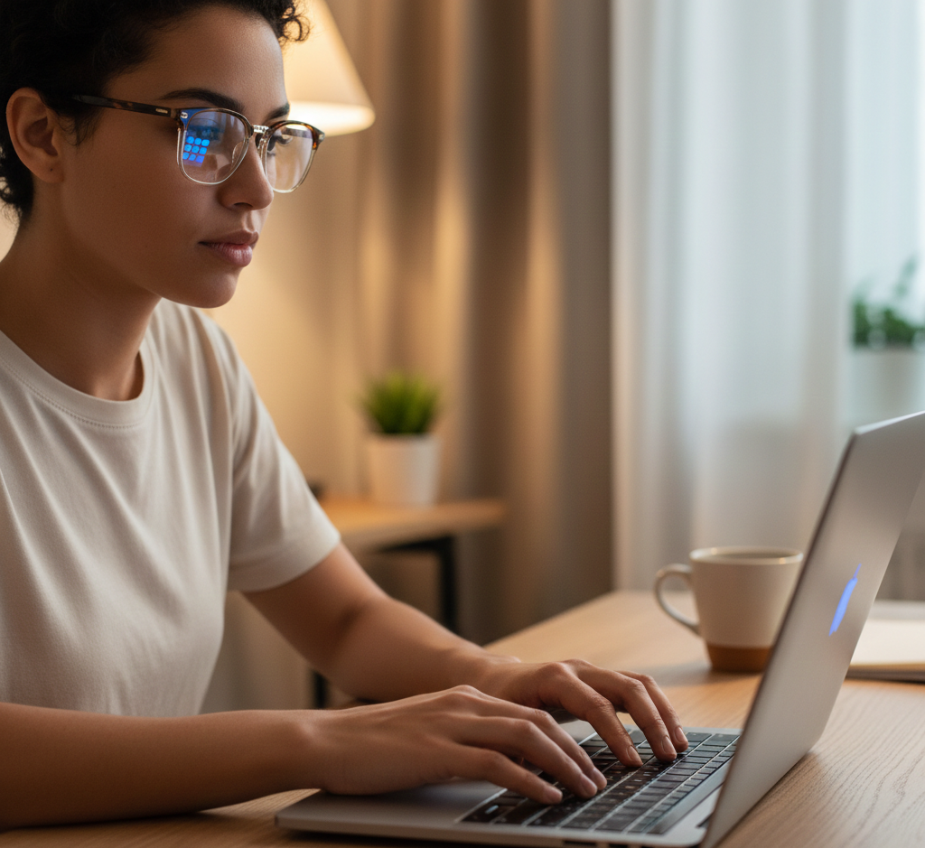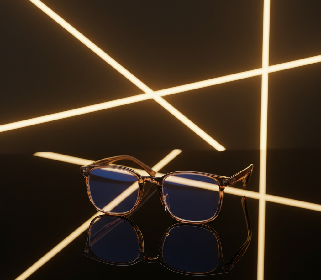 Clear anti-blue light lenses that block up to 30–40% of harmful blue light (400–450nm range)