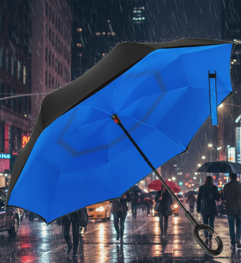 The Reverse Umbrella is an innovative, user-friendly umbrella designed to solve the common problem of wet, dripping fabric when folding. Featuring a reversed opening mechanism, it closes from the outside in, trapping rainwater inside the canopy and keeping users and car interiors dry. Ideal for commuters, drivers, and travelers, this umbrella offers a smarter, cleaner way to stay dry in the rain while reducing mess and water damage.