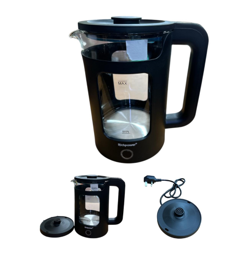The Richpower 1.8L Glass Electric Kettle (Model: RPCK1172) combines elegant design with high-performance functionality, making it a perfect addition to any modern kitchen. Featuring a transparent tempered glass body, this kettle allows you to easily monitor the boiling process while adding a stylish touch to your countertop. With a powerful 1500W heating element, it boils water quickly and safely, ideal for tea, coffee, instant meals, and more.