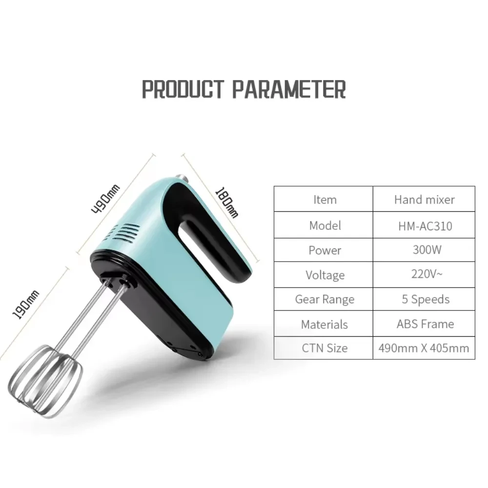 Always unplug before changing attachments. Do not immerse in water—wipe clean with damp cloth. Avoid continuous operation for more than 15 minutes to prevent overheating. Keep away from children. Not suitable for commercial use. For household use only. Design and color (light blue/black) may vary slightly by batch. A reliable and versatile tool for all your mixing needs.