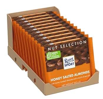 With its square shape and rich combination of flavors, Ritter Sport Honey Salted Almonds is a treat that stands out for chocolate and nut lovers alike.