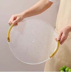 Add a touch of elegance to your home with the Round Tray with Gold Handle – a beautifully designed serving tray that combines functionality with modern sophistication. Perfect for serving breakfast in bed, afternoon tea, cocktails, or organizing décor items, this tray features a smooth round surface and shimmering gold handles that enhance any interior style. Ideal for both practical use and decorative display.