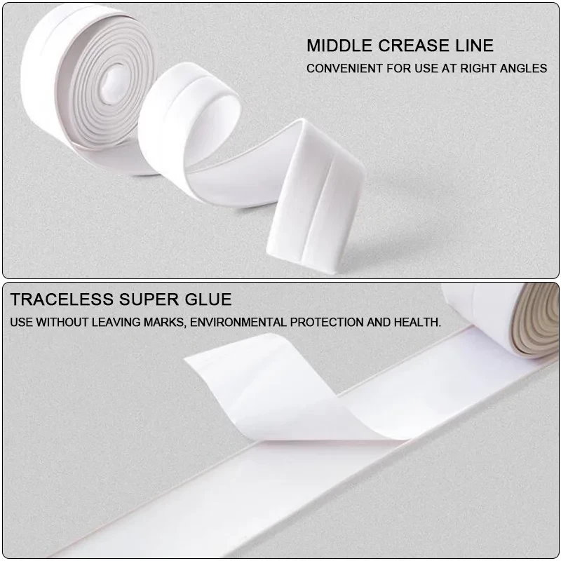 【Wide Use】The waterproof sealing tape can be used at kitchen sink joints and bathtub edge. The pleat design of the caulk strip allows it to fill gaps between vertical walls.