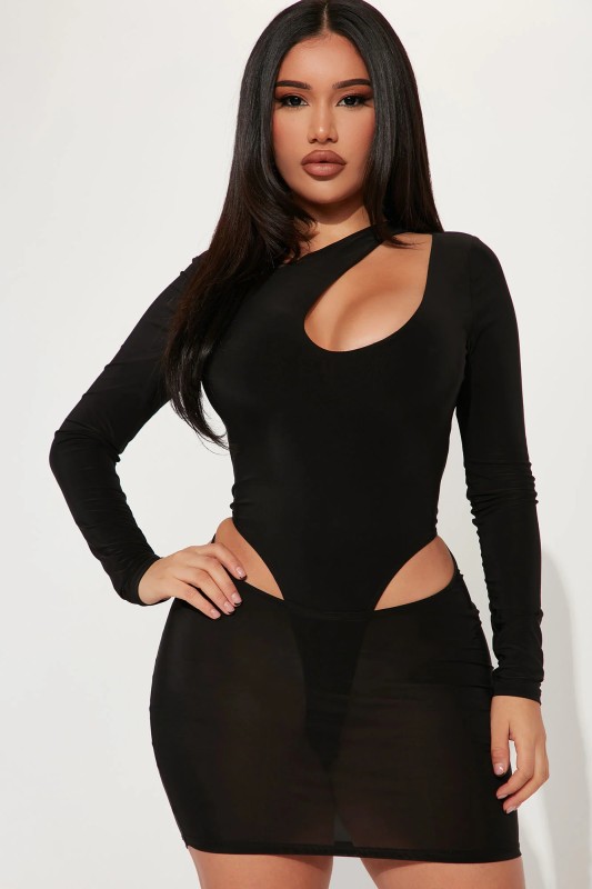 Shoulder Detailed Long Sleeve Bodycon Mini Dress