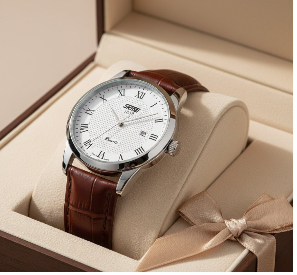 Its precise analog movement ensures accurate timekeeping, while the leather strap provides comfort for all-day wear. The SKMEI leather watch combines elegance with practicality, making it a perfect gift for loved ones or a stylish addition to your collection.
