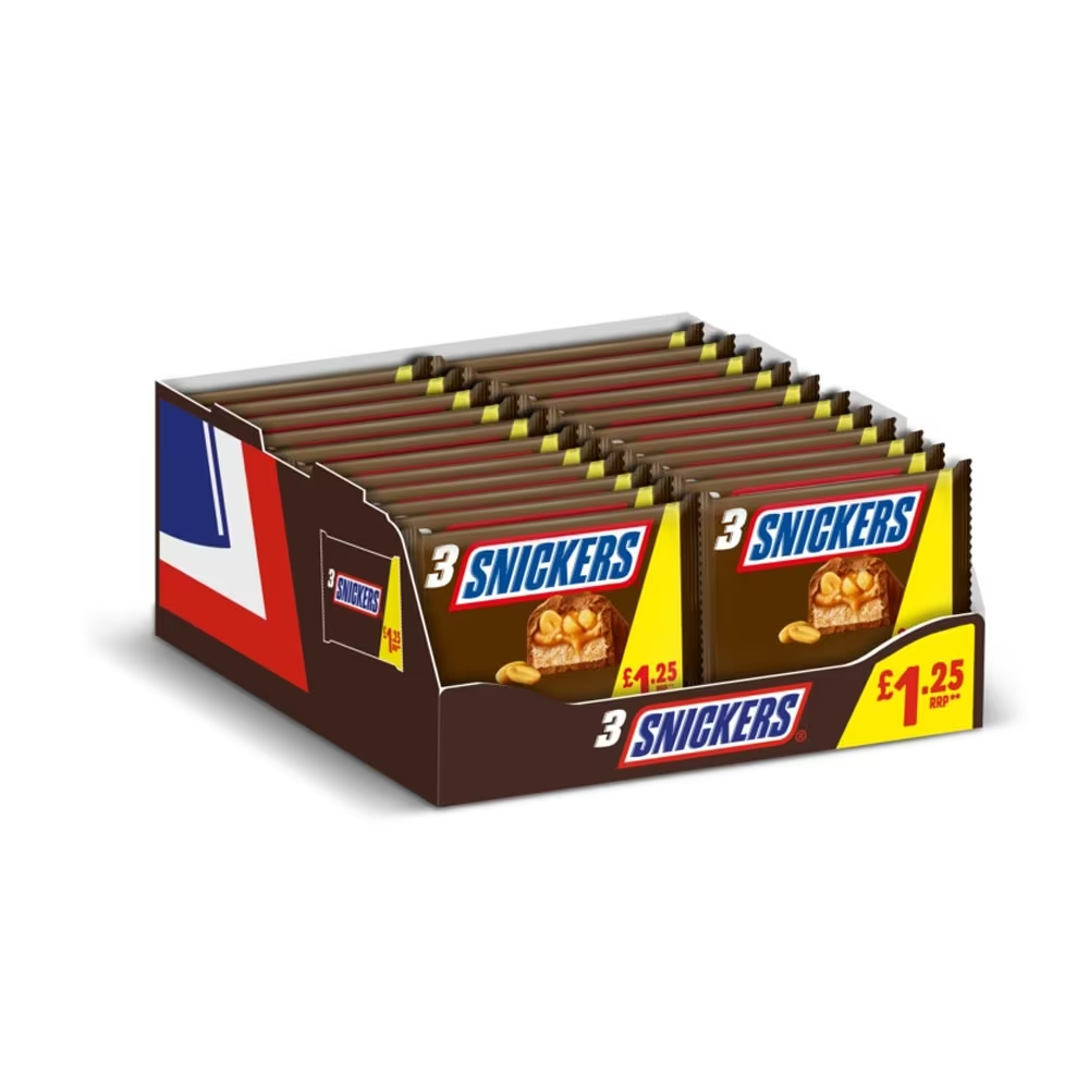 Snickers 3 Pack 125.1g – the perfect blend of nuts, caramel, and chocolate in every bite.