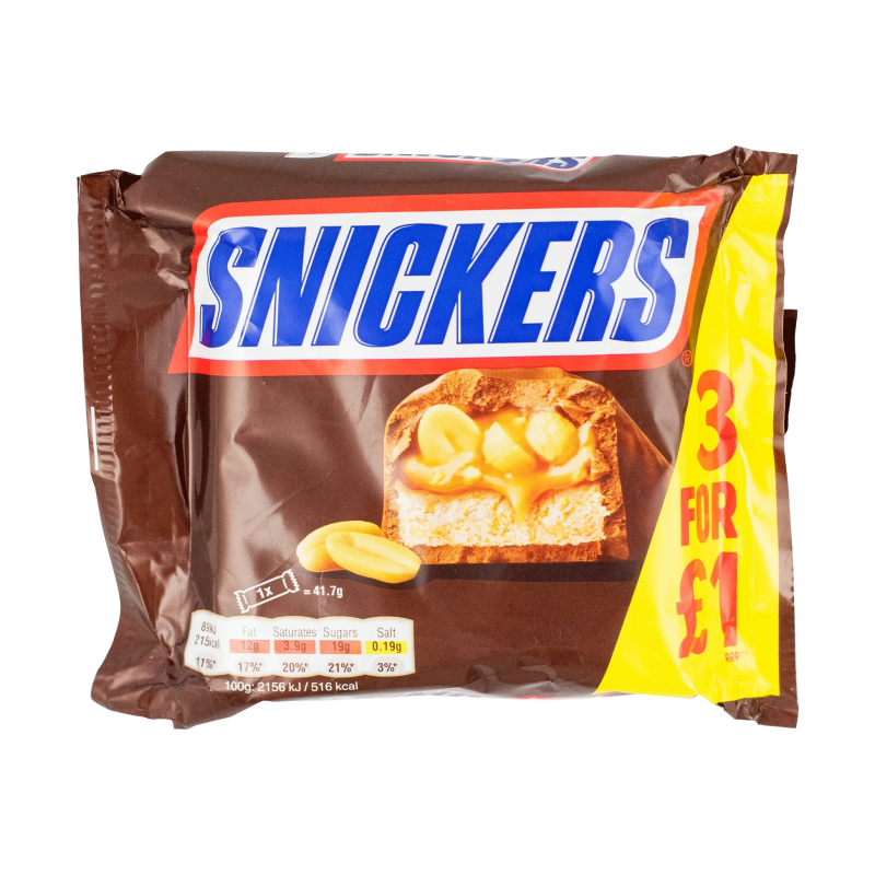 Satisfy your hunger with the unbeatable taste of the Snickers 3 Pack 125.1g. Each bar combines crunchy peanuts, creamy caramel, rich nougat, and a smooth milk chocolate coating to deliver the classic Snickers taste you know and love.