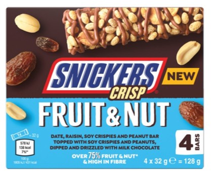 4-bar pack of Snickers Crisp Fruit & Nut, total 128G