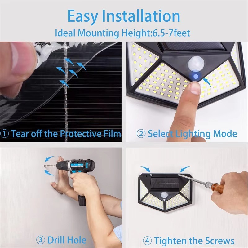 Illuminate your outdoor spaces with the Solar Wall Lamp 100 LED Light.