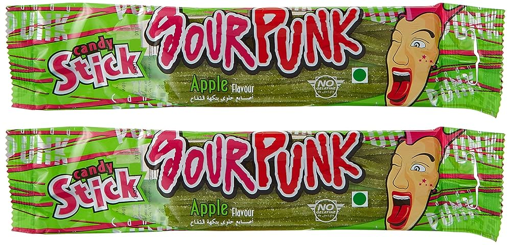 Get ready for a tangy twist with the Sour Punk Apple Candy Stick 40g. Bursting with a sharp, sour apple flavor, this chewy candy stick is the perfect treat for anyone who loves a mix of sweet and sour. Its long, chewy texture makes snacking both fun and satisfying.