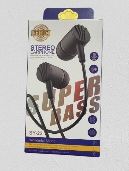 Experience music like never before with the Stereo Super Bass Earphone SY22. Designed for music lovers, these earphones deliver deep, powerful bass and crystal-clear sound for an immersive audio experience.