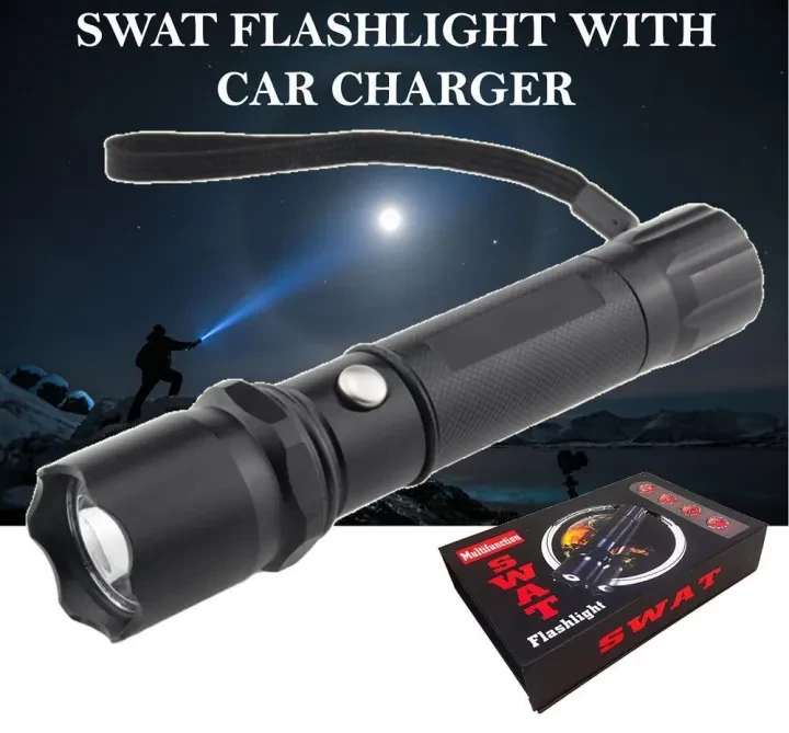 Light up your surroundings with the SWAT Multifunctional Rechargeable Flashlight, a reliable and versatile lighting solution. Built with high-quality materials, this tactical LED torch is perfect for outdoor adventures, emergency situations, camping, or home use.