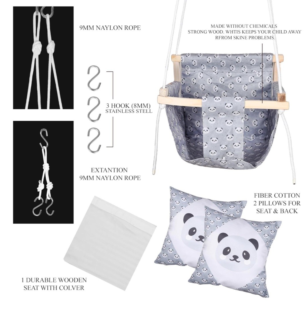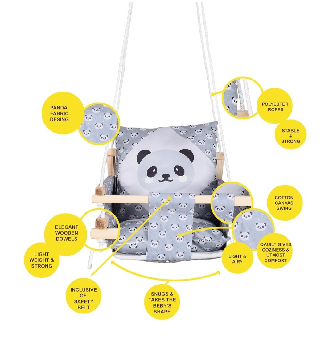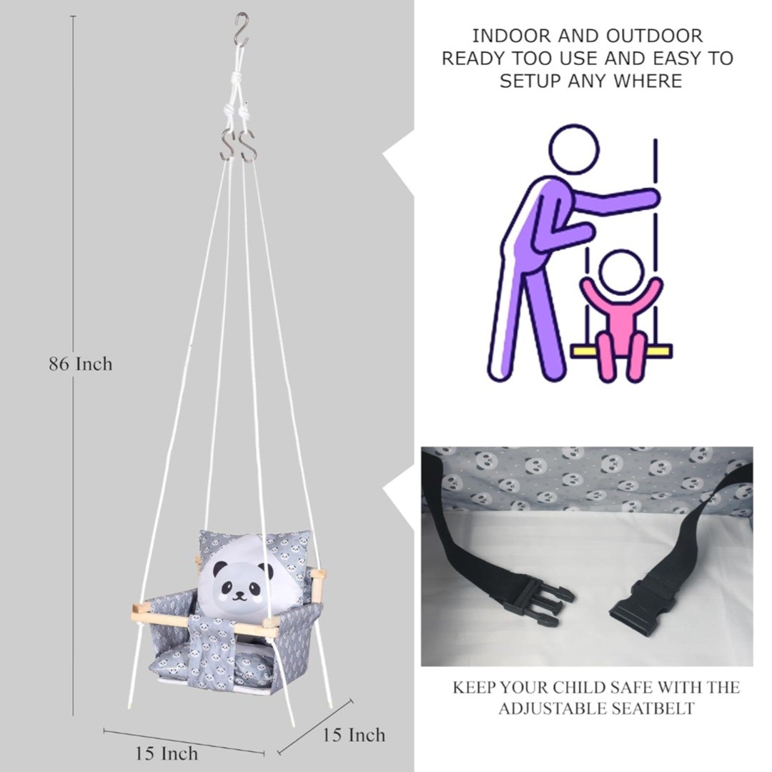 "AGES and WEIGHT : Weight capacity is 20 kg and Size is 15 x 15 inch so It Can be Use for 6 months to 4 Year Old Child CAN BE USED INDOORS AND OUTDOORS: You can Install these Kids Swings / Jhula with ropes inside your home or Outside in your Balcony or in your Garden using a fixed hook.