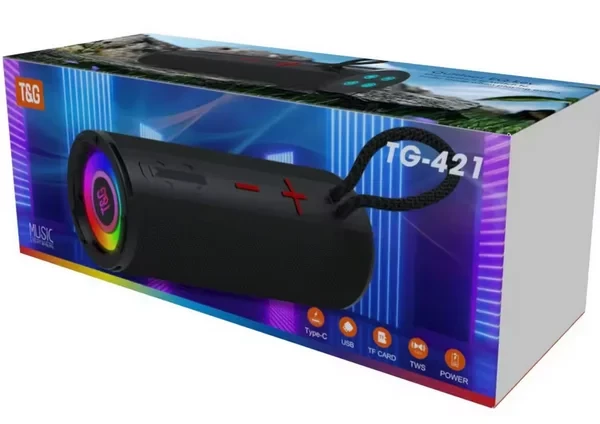 The T&G TG-421 RGB Portable Bluetooth Speaker combines clear audio performance with vibrant RGB lighting for an immersive music experience. Designed for portability and wireless convenience, it is perfect for home entertainment, outdoor gatherings, and travel.