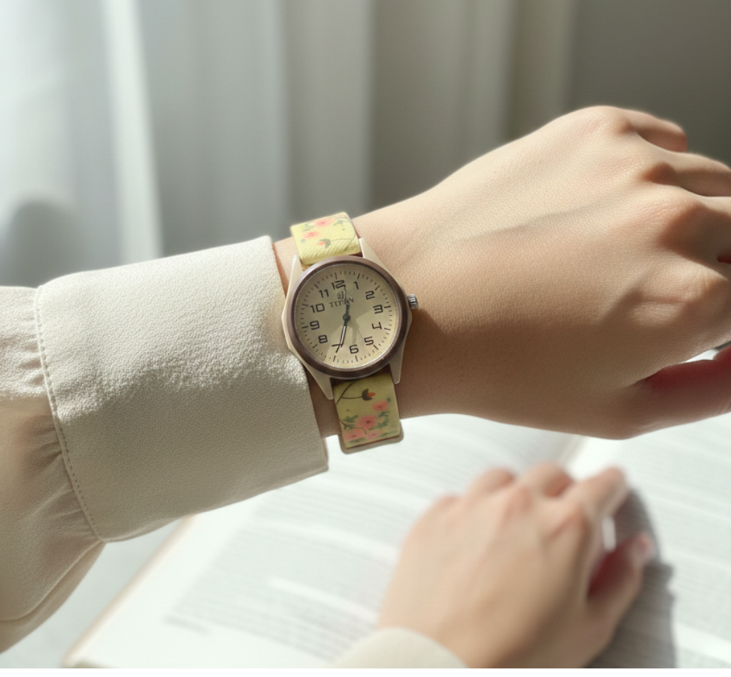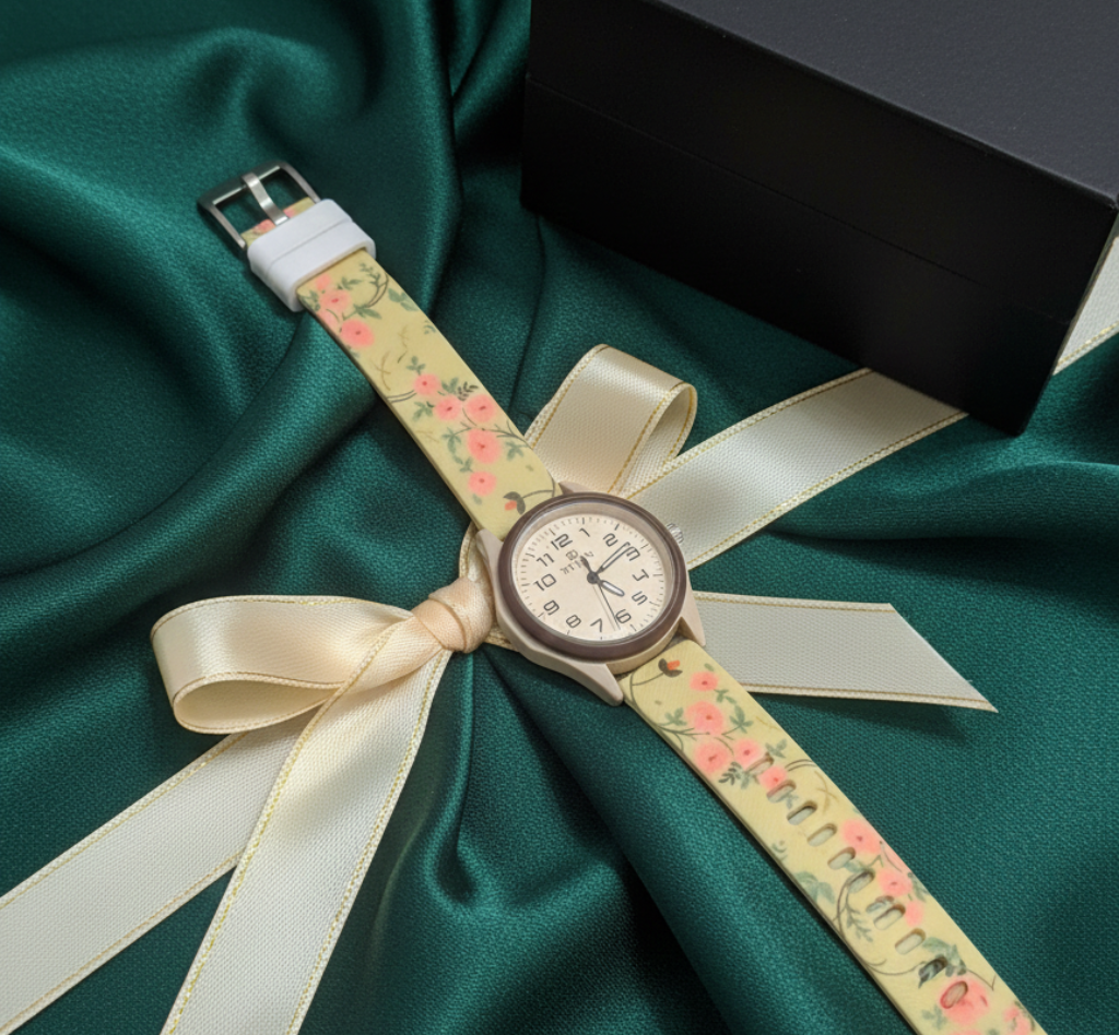 1 × Titan Floral Pattern Strap Watch – Round Dial