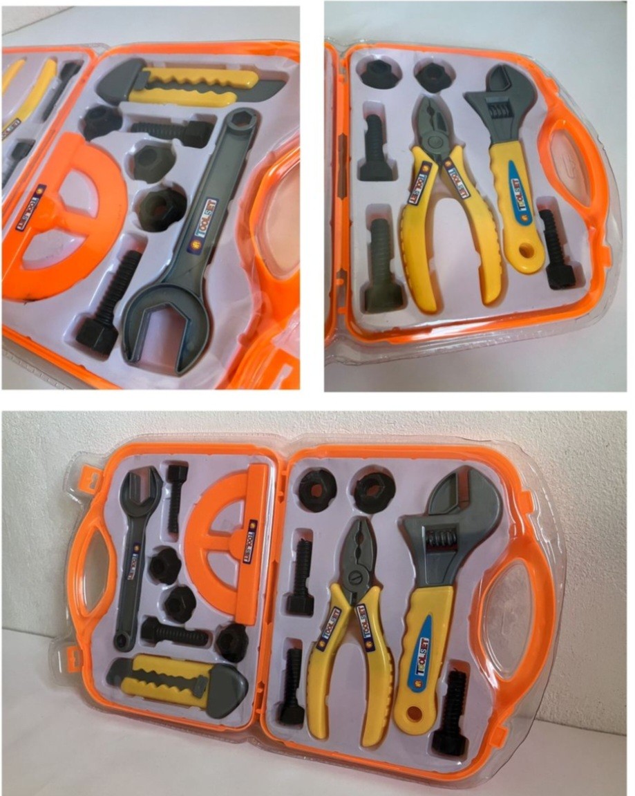 REALISTIC TOOLS: Pull the trigger of the hand drill, unleashing all its power. Realistic clicking sounds activated by little fingers! The roller is fully functional and realistic. Learn early math concepts. This tool box is packed with educational toys. PORTABLE STORAGE BAG: Lightweight and durable, the tool box can hold all the tools. Grab the handle and take it with you. The convenient tool tray flips over to become a workbench