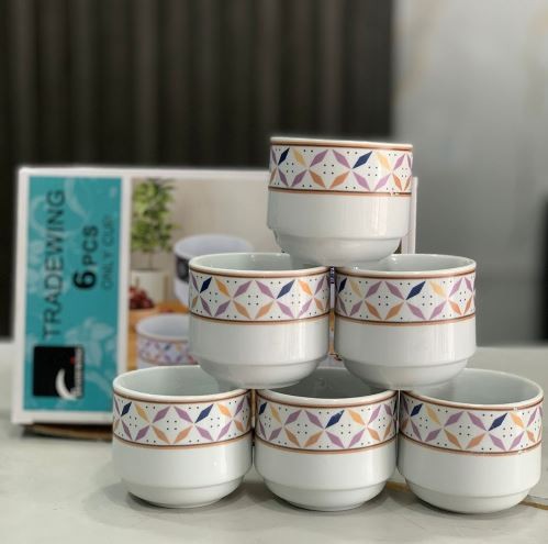 The Tradewing 6pcs Ceramic Cup Set – RPC160C is a beautifully crafted collection of compact, high-quality ceramic cups designed for everyday elegance and practical use. Each cup features a refined round profile with a smooth, glossy finish, offering a comfortable grip and a timeless look that complements any kitchen or dining setting. With a 160ml (5.4 oz) capacity, these cups are perfect for serving espresso, tea, coffee, or small desserts like custard, pudding, or parfait. Ideal for homes, offices, cafes, or as a thoughtful gift.