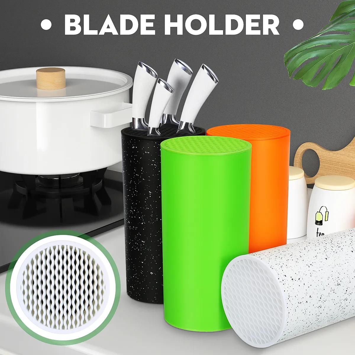 Crafted from high-quality, durable materials, the holder provides a stable and sturdy base for multiple knife sizes and shapes — from chef’s knives to paring and utility blades. Its universal slot-free design allows flexible knife arrangement without dulling blades or limiting storage options.