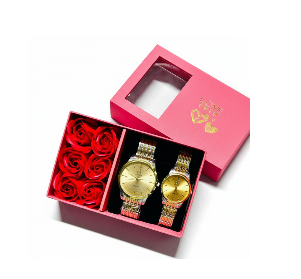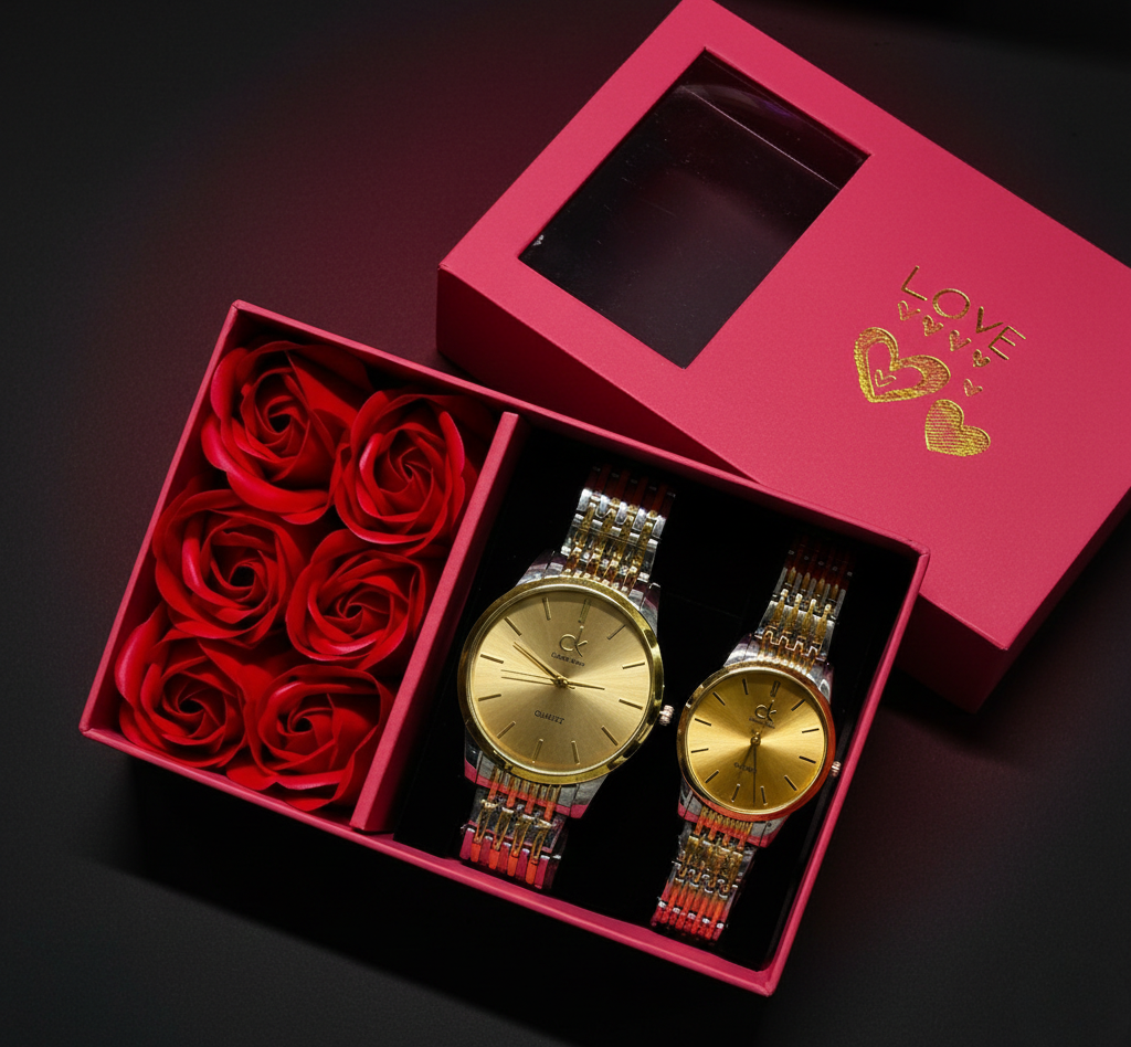 Celebrate love with the Valentine Couples Watch Set with Rose Box. This elegant gift set includes matching watches for him and her, beautifully presented in a romantic rose-themed gift box. It is the perfect gift for Valentine’s Day, anniversaries, birthdays, or special occasions.
