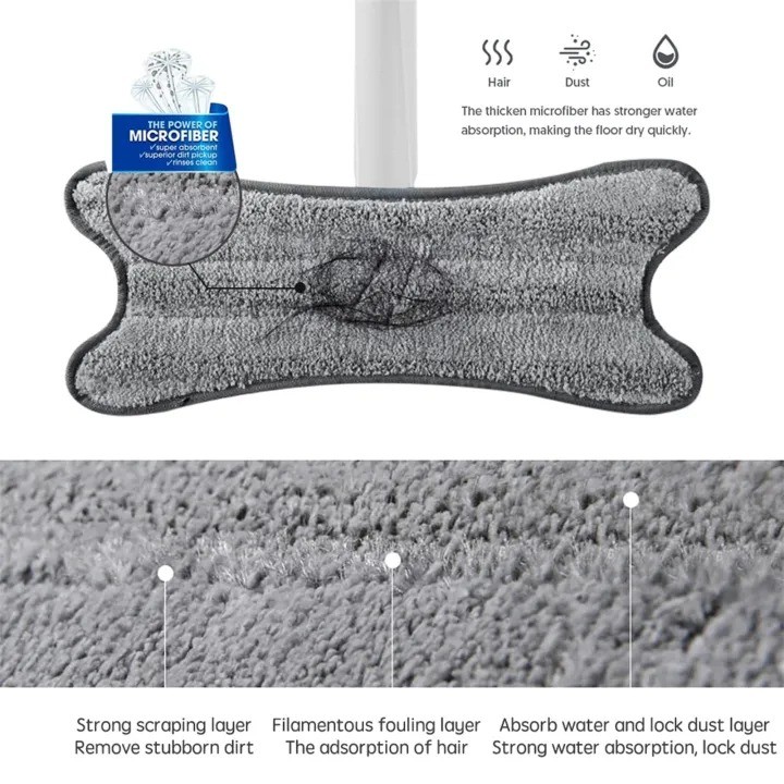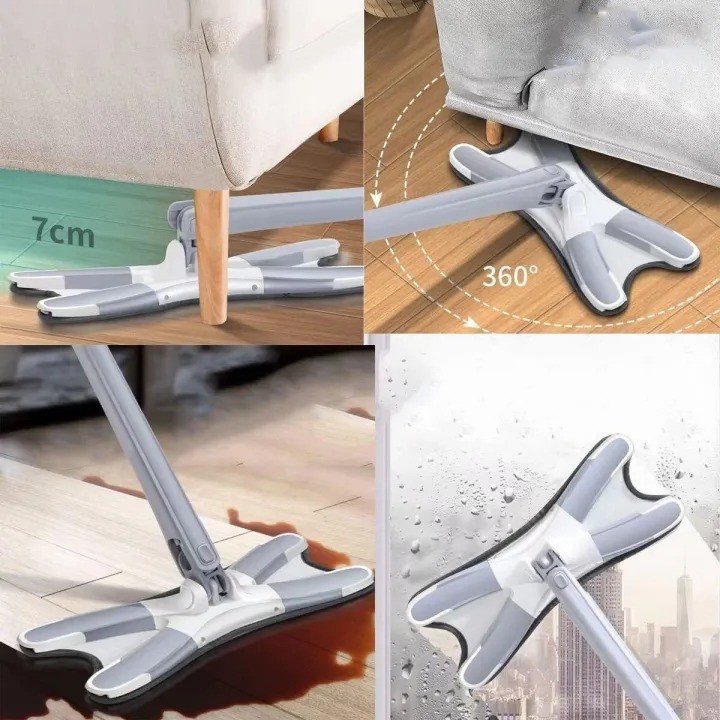 Designed with an X-shaped handle and 360° rotating head, this mop makes it easy to clean corners, edges, and hard-to-reach areas. The microfibre pad efficiently absorbs dust, dirt, and water, giving you a streak-free shine on tiles, wood, laminate, and marble floors. Perfect for home, office, or commercial cleaning.