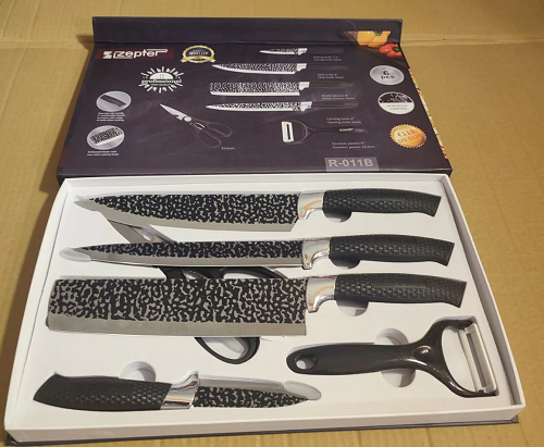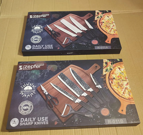 Upgrade your kitchen with the Zepter 6 Pcs Knife Set, crafted from premium stainless steel for sharpness, precision, and long-lasting durability. Each knife features an ergonomic handle for a comfortable grip, ensuring safety and control during chopping, slicing, and dicing. Perfect for home chefs and culinary enthusiasts, this elegant knife set combines functionality with style, making food preparation easier and more enjoyable.