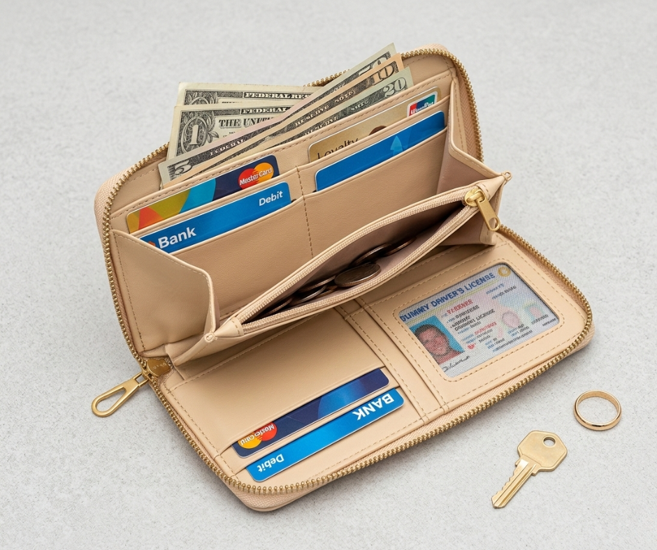 Compartments: Card slots + Cash section